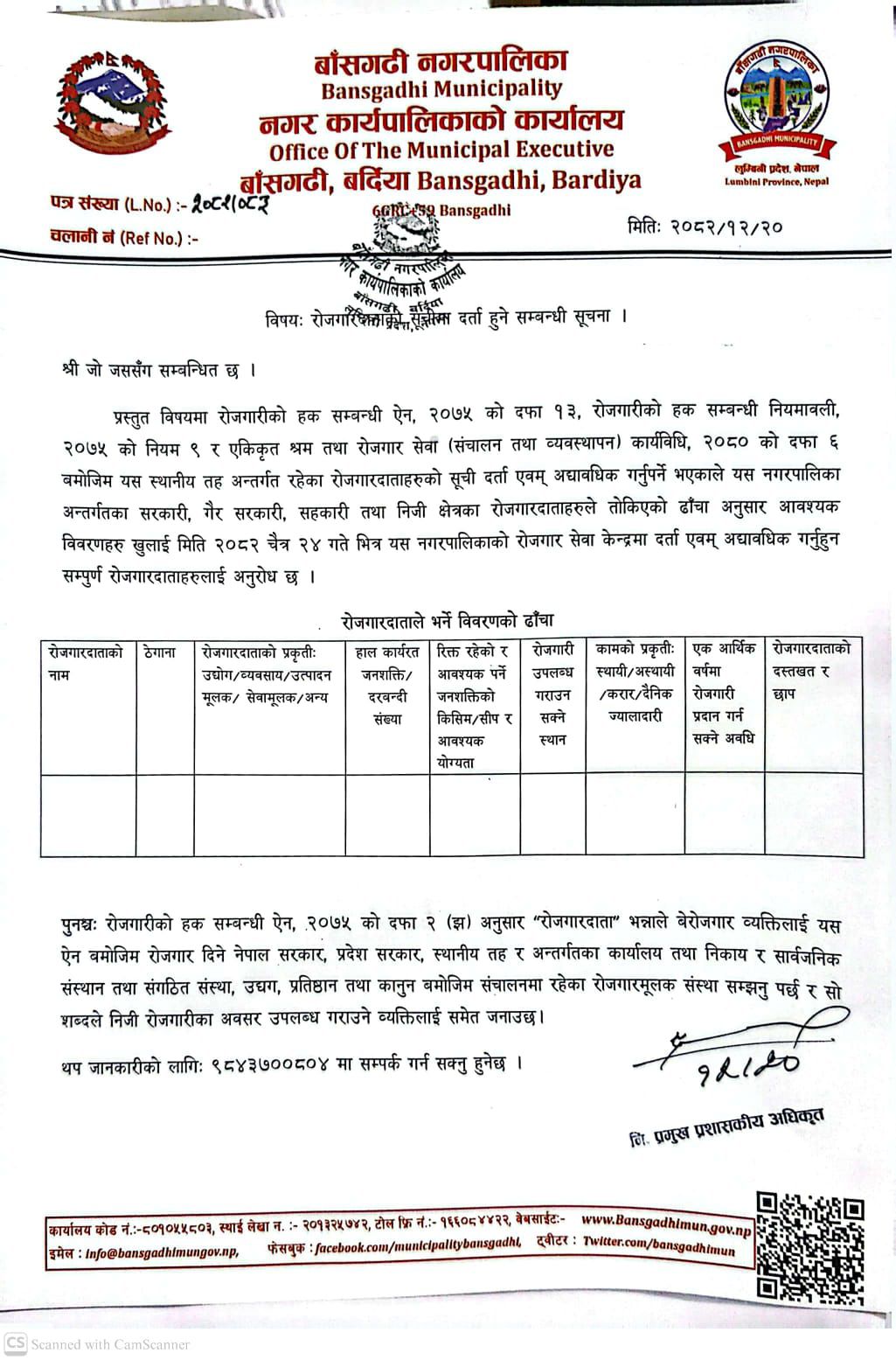 Home » रोजगारदाताको सूचिमा दर्ताहुने सम्बन्धी सूचना ।