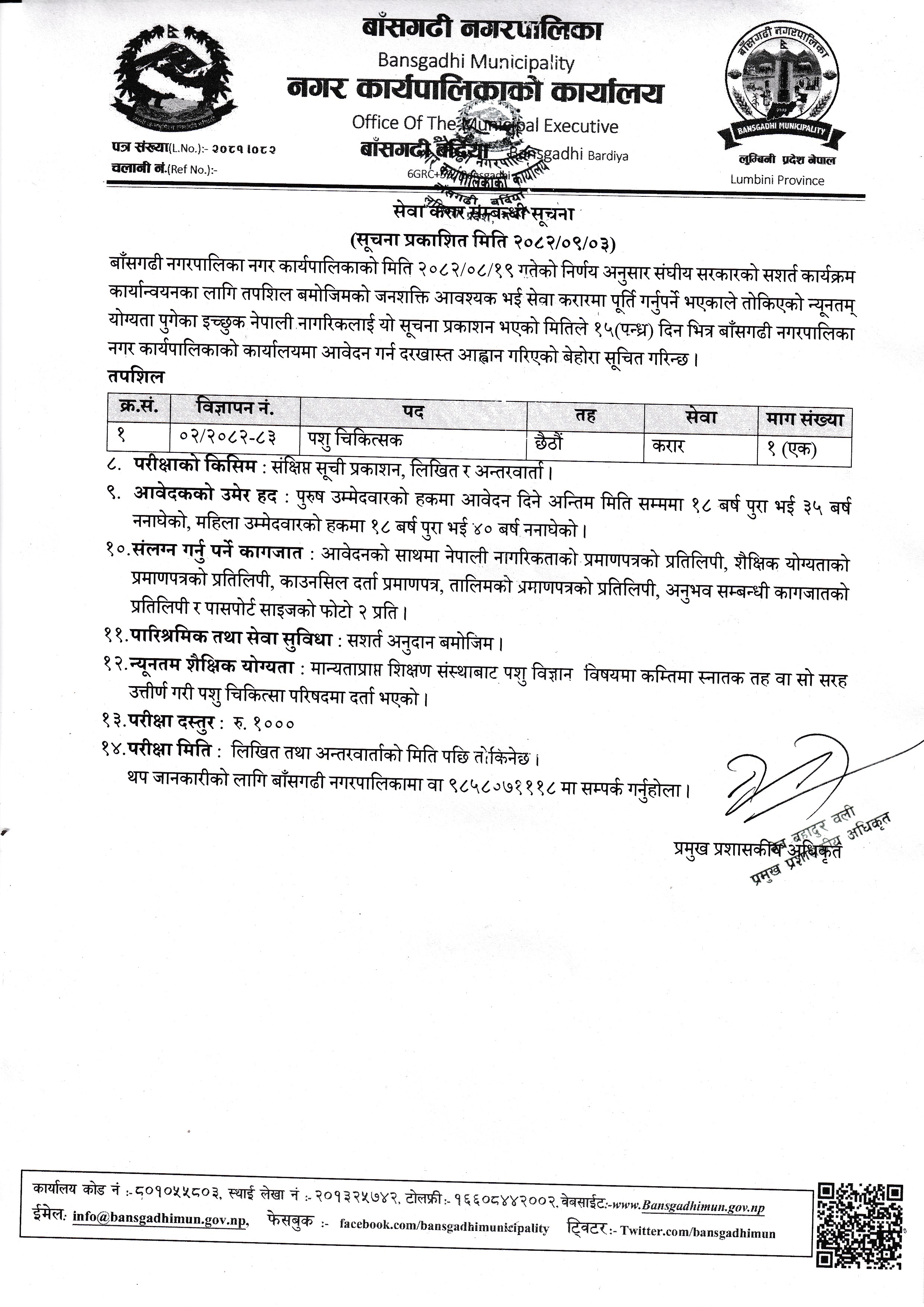 सेवा करारमा पशु चिकित्सक आवश्यकता सम्बन्धी सूचना ।