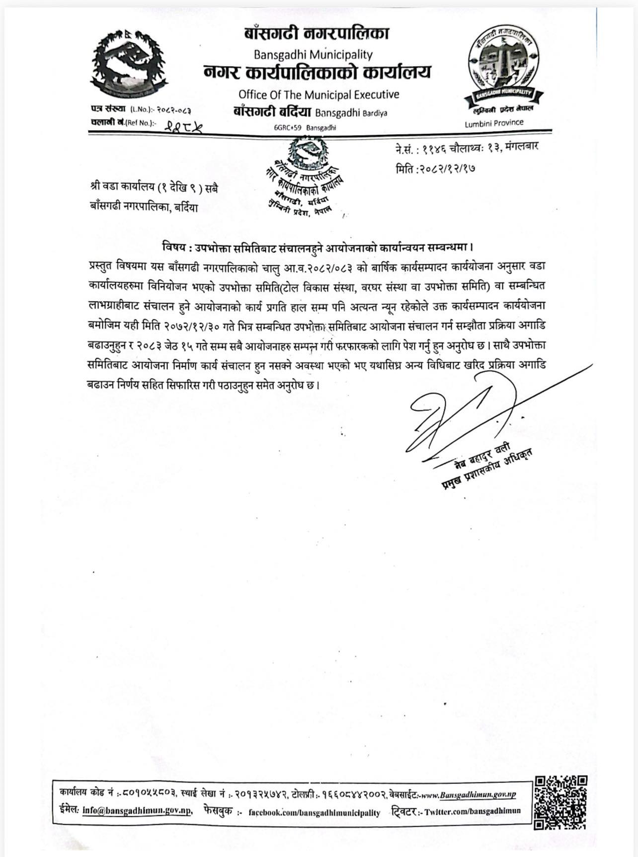 Home » उपभोक्ता समितिबाट सन्चालन हुने आयोजनाको कार्यन्वयन सम्वन्धमा ।
