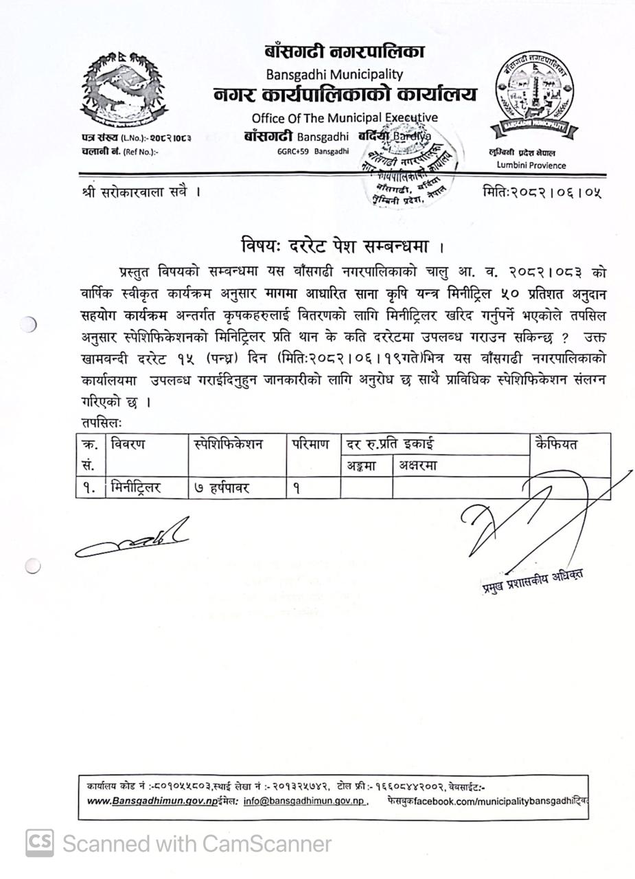Home » दररेट पेश गर्ने सम्बन्धी सूचना ।